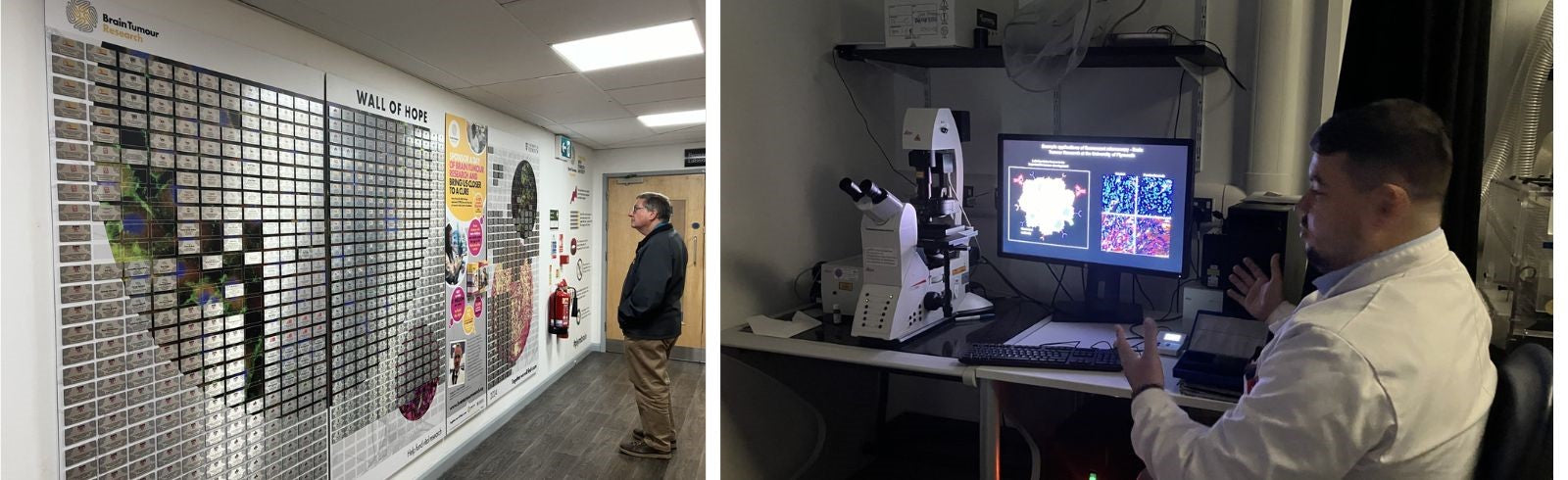 Professor David Parkinson, Lead Investigator at Plymouth (pictured above last weekend doing our Torpoint Walk of Hope), said: “Lab tours are great and a big part of our work is to explain to patients about our research focus and how we can hopefully make a difference for patients with similar kinds of brain tumours. And the Wall of Hope – it’s always quite humbling to walk past and reflect on the effort people have made to raise money for the Charity. It really boosts our resolve in the lab to bring about better outcomes for patients.”