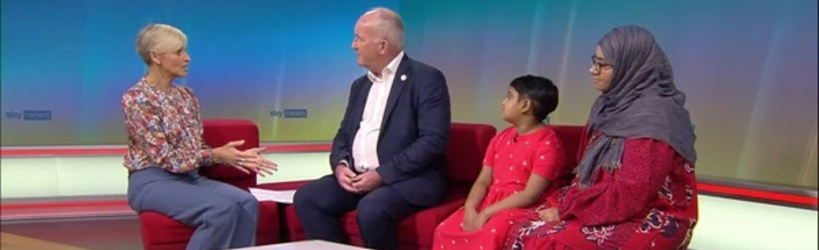 Sarah’s mum, Uroos, shared her daughter’s story in the Sky News studio, alongside our Head of Stakeholder Relations, Hugh Adams, who said it is “unacceptable” that families are being forced to research, access and self-fund treatment abroad having no options in the UK.