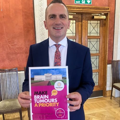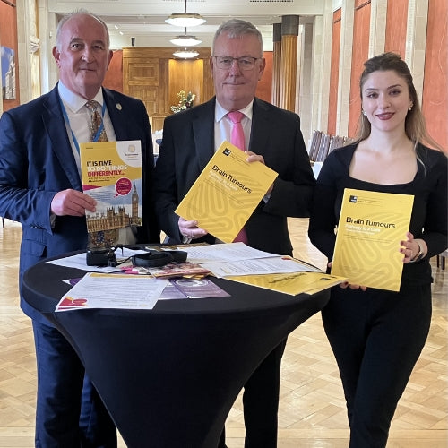 We attend events at Stormont to further raise awareness of brain tumours and drive political action in Northern Ireland. We held a drop-in event in 2024, sponsored by Cara Hunter MLA (pictured), who we have been in contact with since she disclosed her own brain tumour diagnosis: