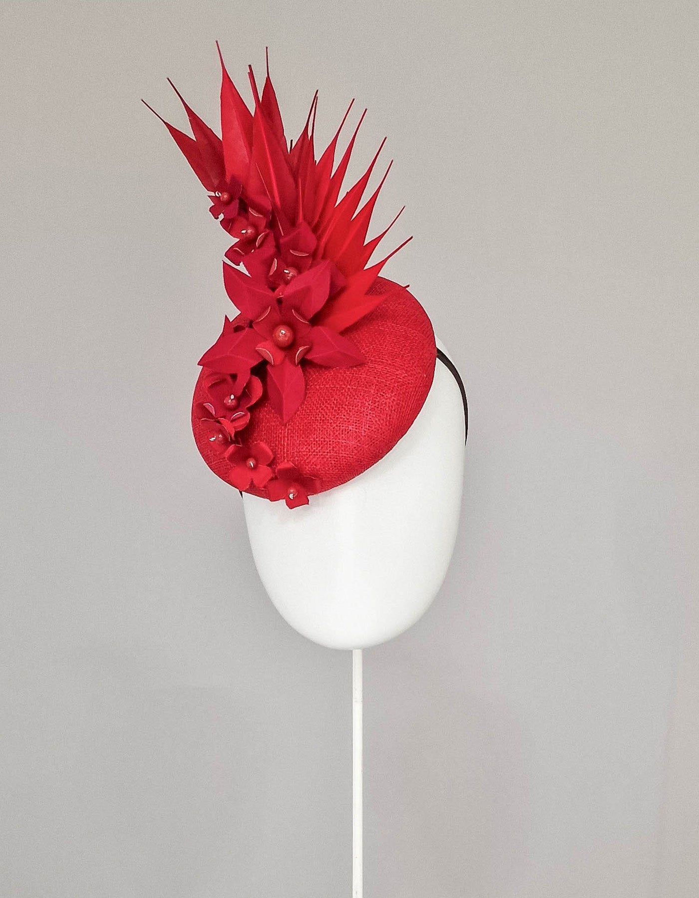 Incorporating goose feathers and crystal pearls, this hat shares its name with the prize-winning stallion, incorporating Nijinsky’s scarlet red, emerald green and sunshine yellow racing colours.